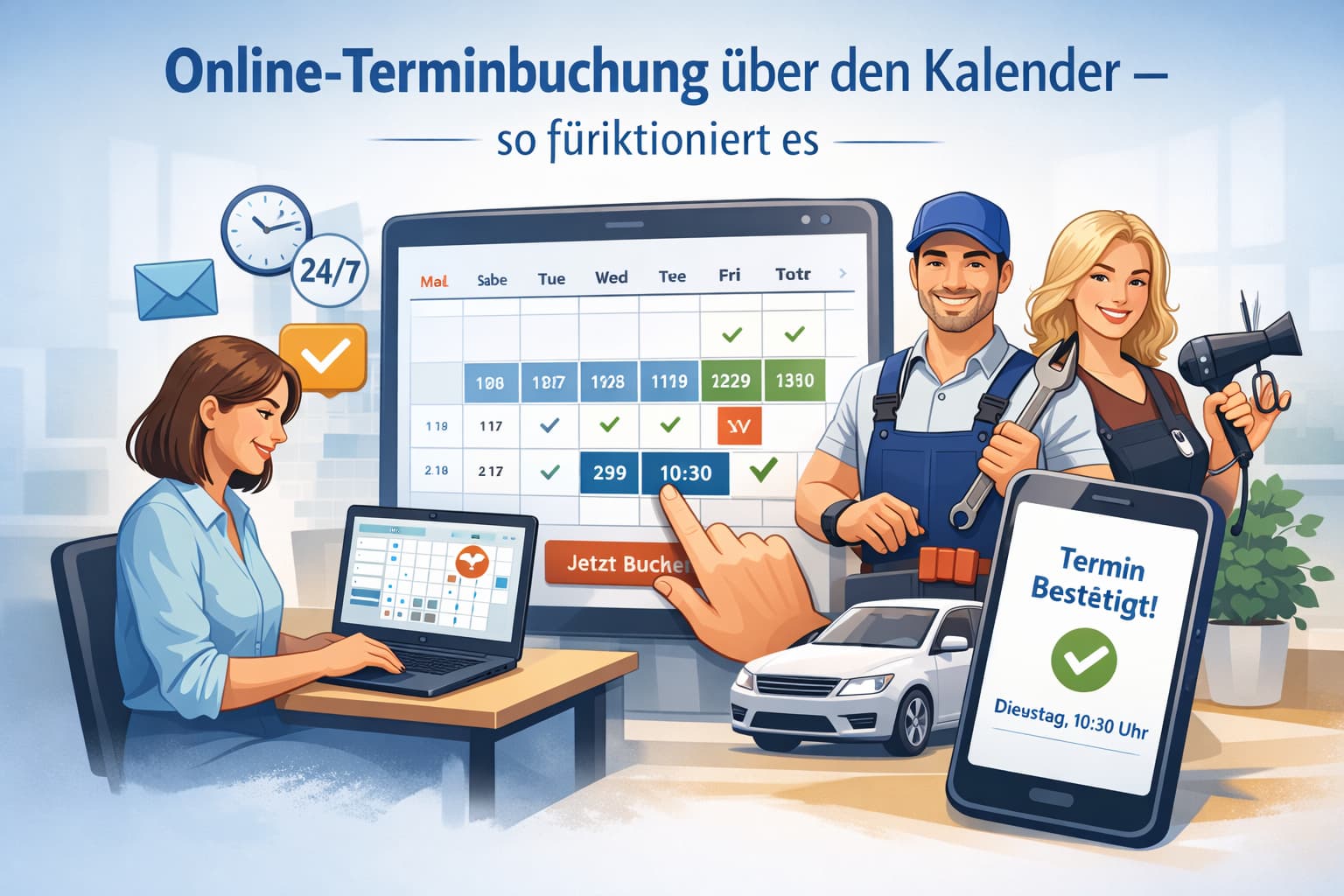 Warum Online-Terminbuchung heute Standard ist Telefonate, E-Mails, Rückrufe, Terminabsprachen über mehrere Nachrichten – das kostet Zeit und Nerven.Kunden erwarten heute