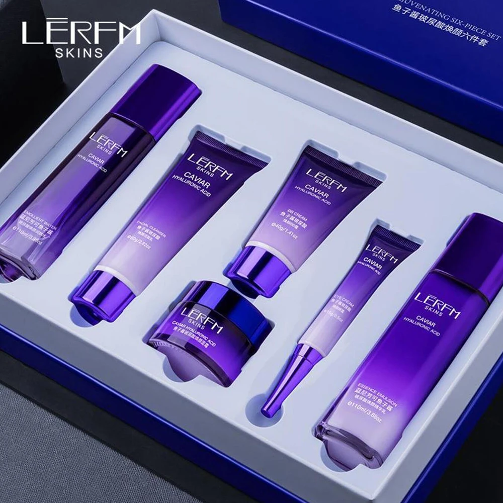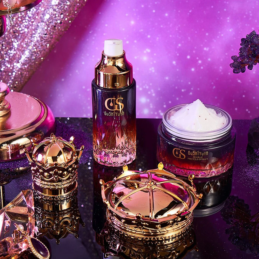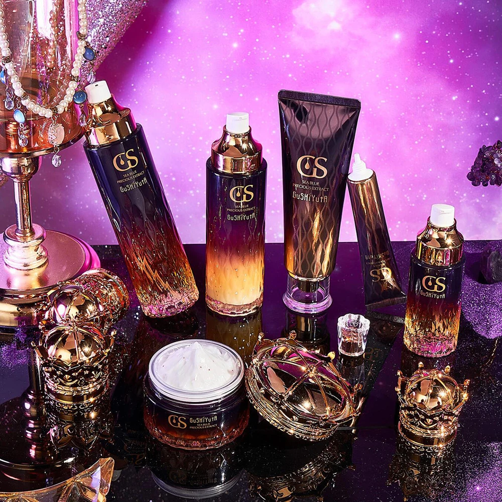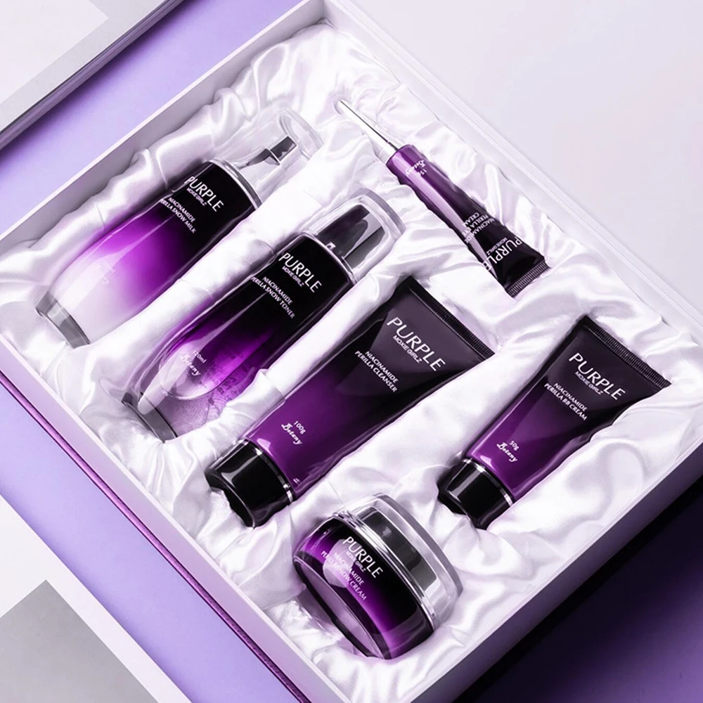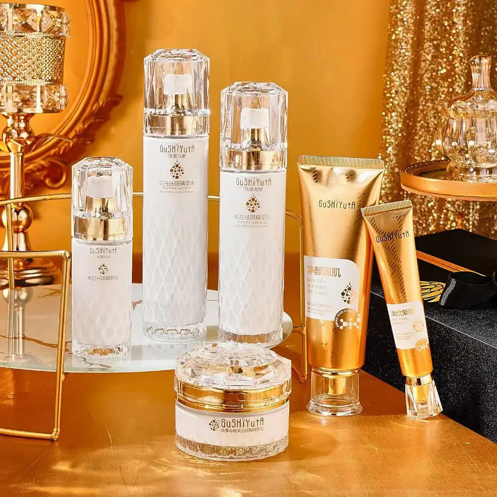 The set contains a moisturizer, serum, face lotion, toner and make-up water, which together help to reduce melanin, improve skin tone and give the skin a radiant, even appearance.