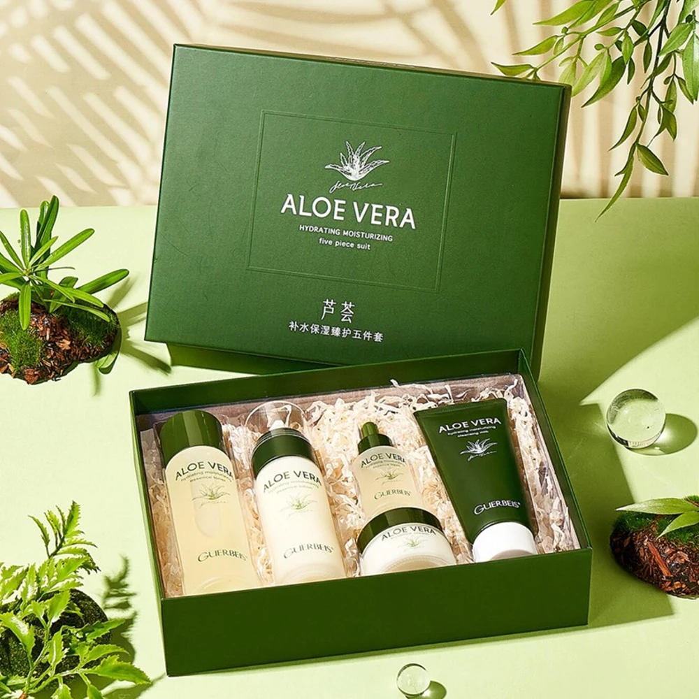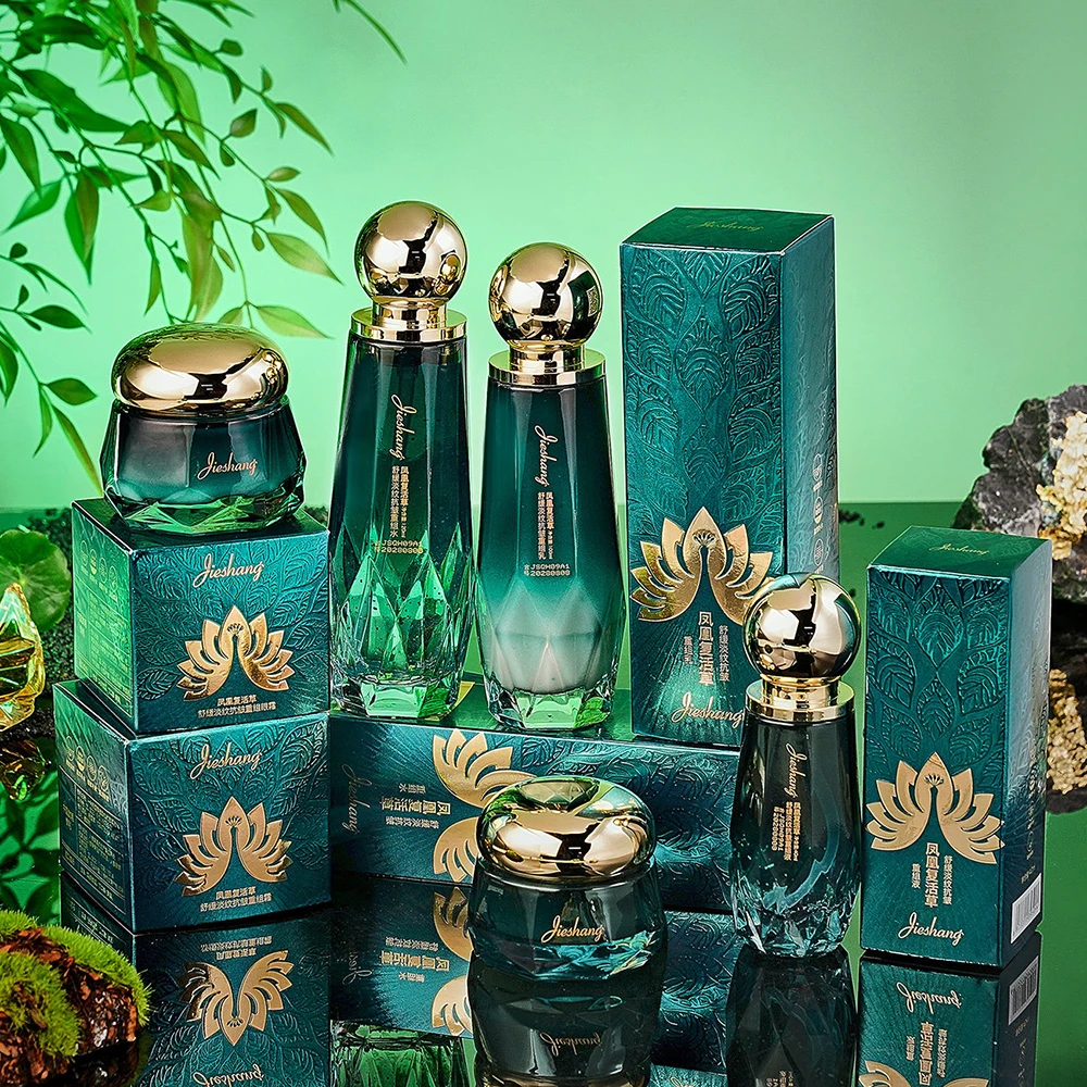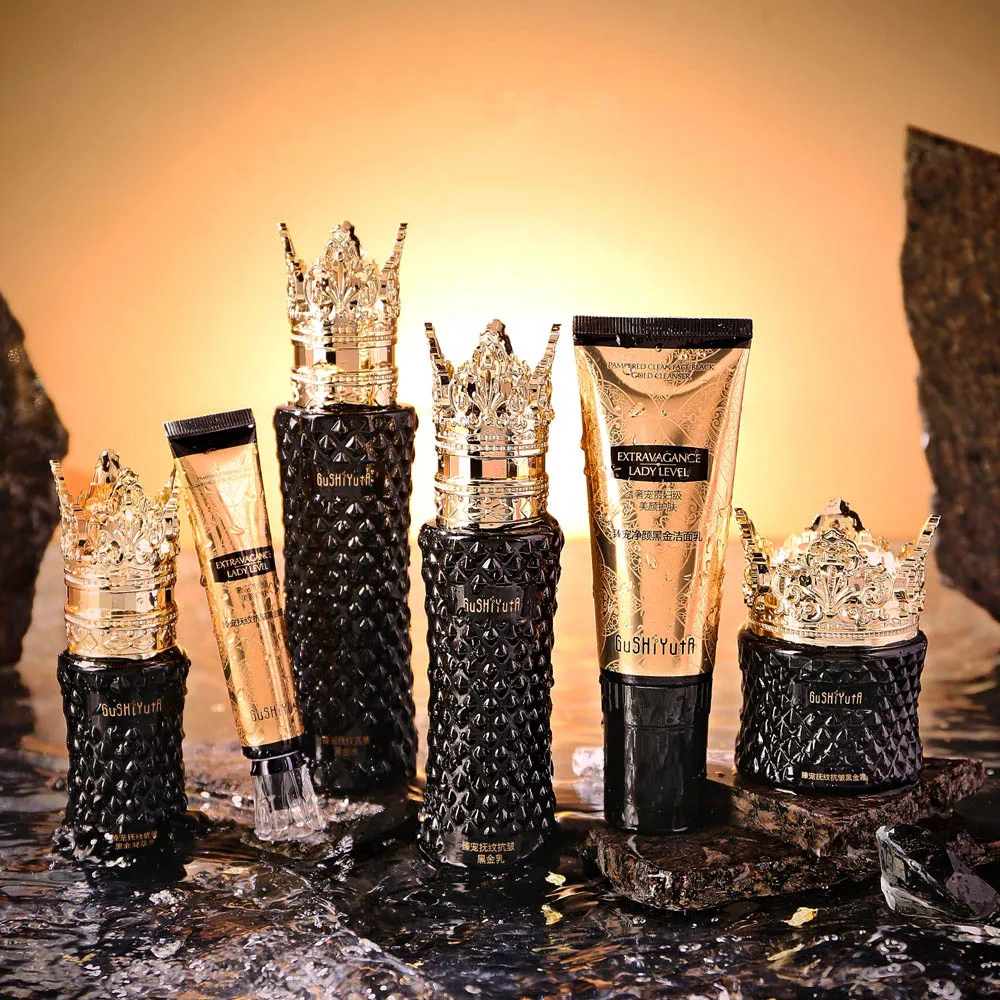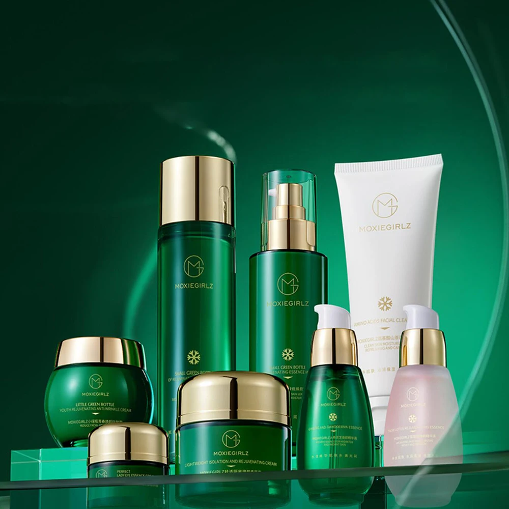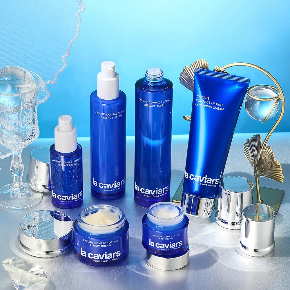 The set contains a moisturizer, serum, face lotion, toner and make-up water, which together help to reduce melanin, improve skin tone and give the skin a radiant, even appearance.