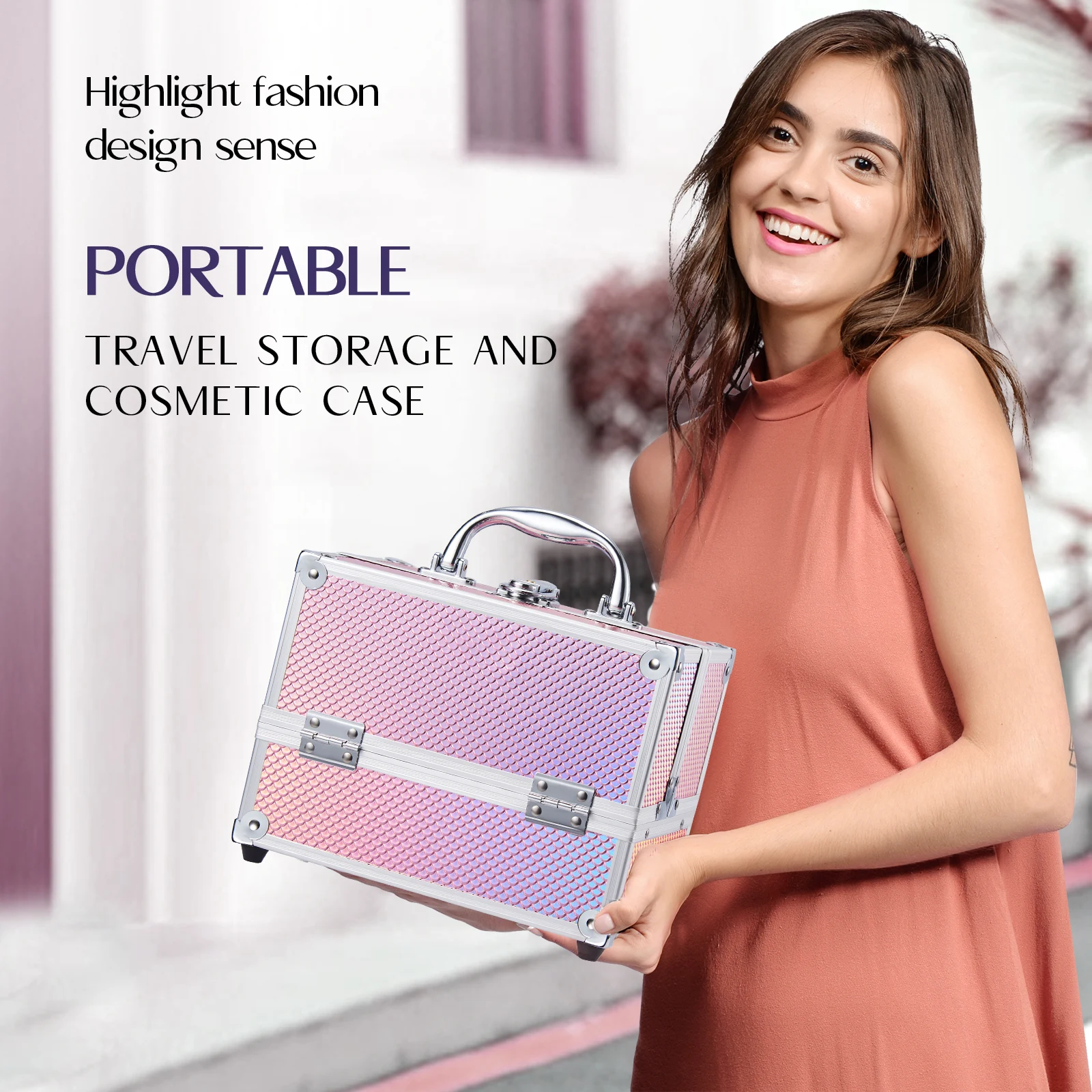 Portable Makeup Case with Lock – Mermaid Design, 4 Compartments | Cosmetic Case for Girls – Jewelry, Nails & Hair Accessories