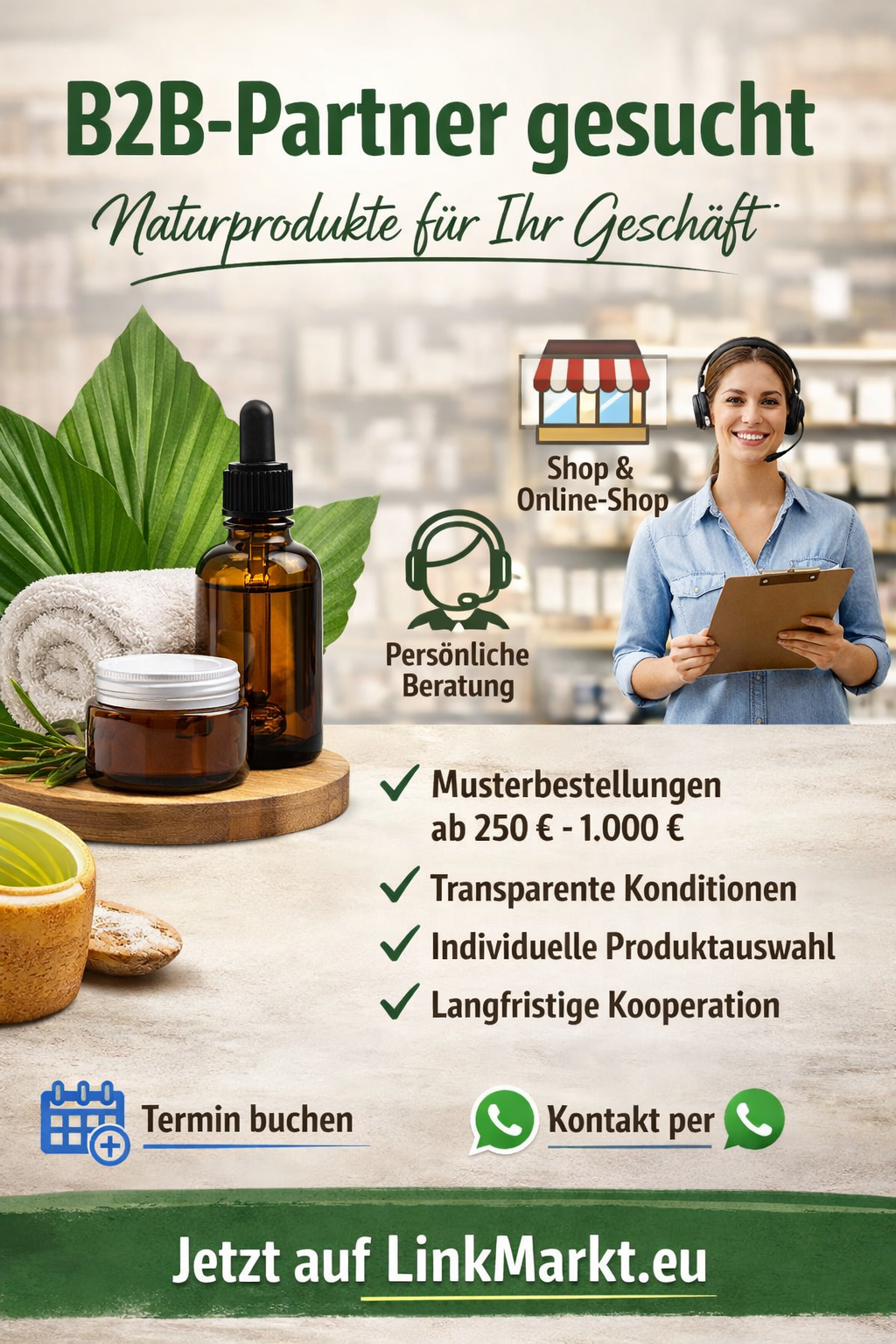 Wir suchen Einzelhändler, Online-Shops, Studios und Dienstleister, die ihr Sortiment um hochwertige Naturprodukte erweitern möchten.