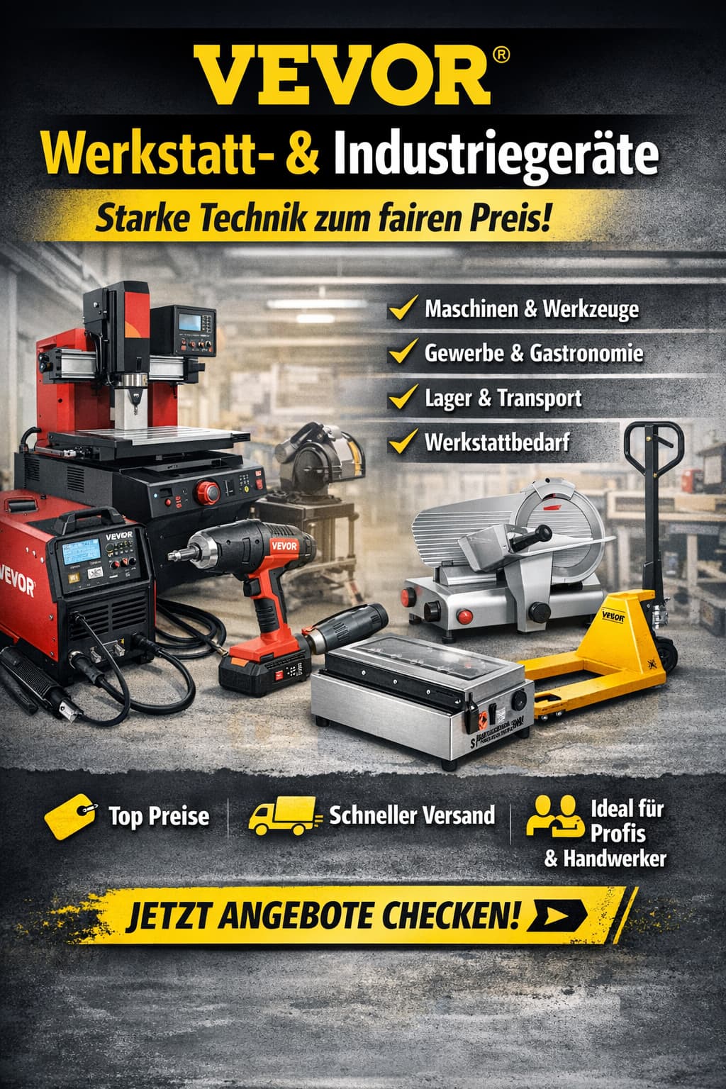 Professionelle Werkstatt-, Industrie- und Gewerbegeräte von VEVOR – ideal für Handwerker, Selbstständige, Werkstätten und kleine Betriebe.