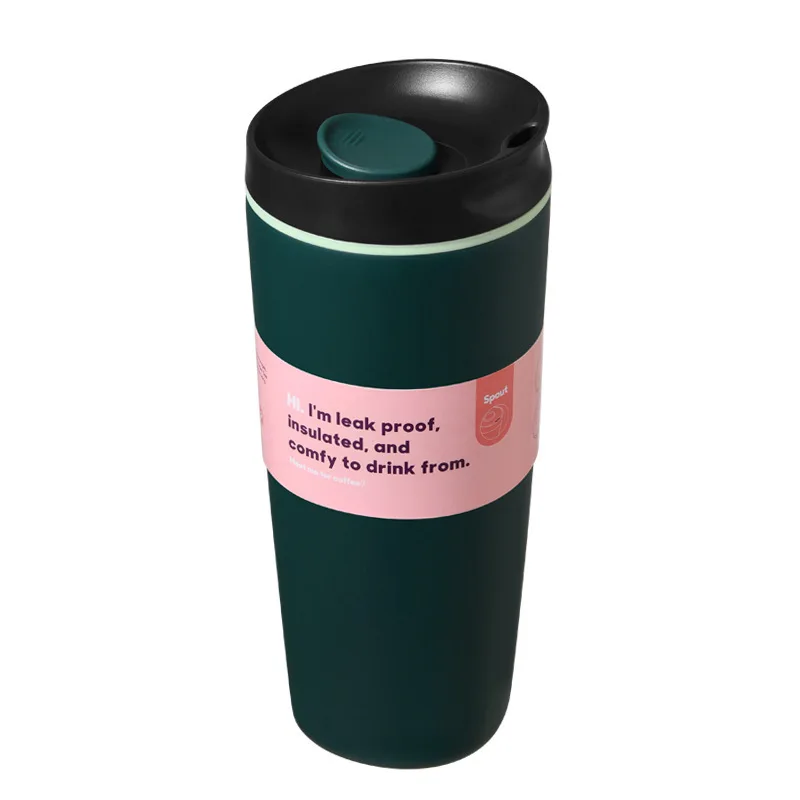 Der auslaufsichere Deckel sorgt dafür, dass der Becher problemlos in Taschen, Rucksäcken oder im Auto transportiert werden kann, ohne zu tropfen oder auszulaufen. Der rutschfeste und geräuscharme Boden verhindert störendes Klappern auf Tischen oder Schreibtischen und bietet zusätzliche Stabilität.