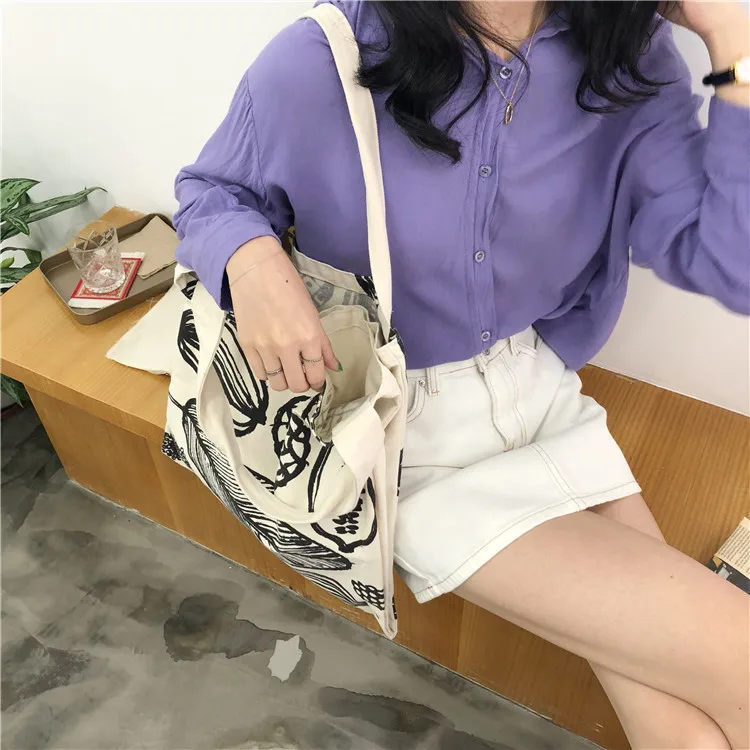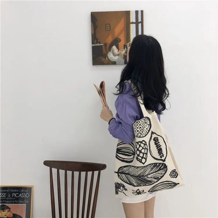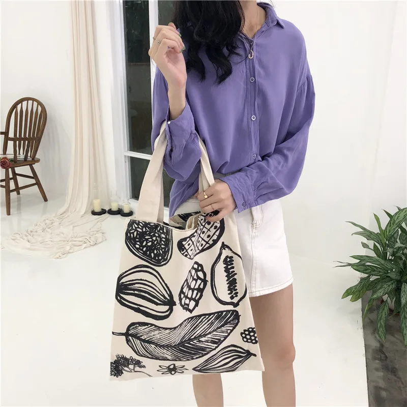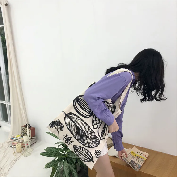 Unsere große Damen Schultertasche mit Blätter-Print besteht aus robustem Baumwoll-Canvas oder Leinen und bietet viel Platz für Einkäufe, Bücher oder Alltagsgegenstände.