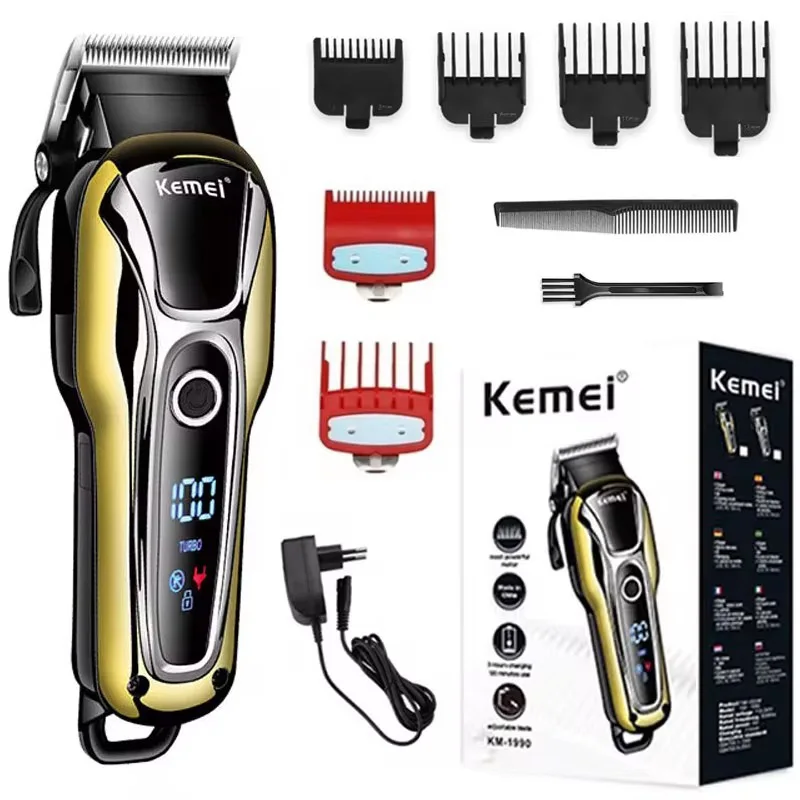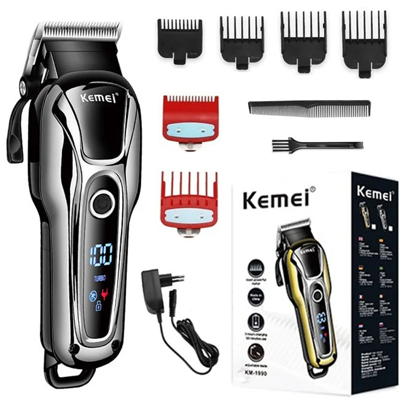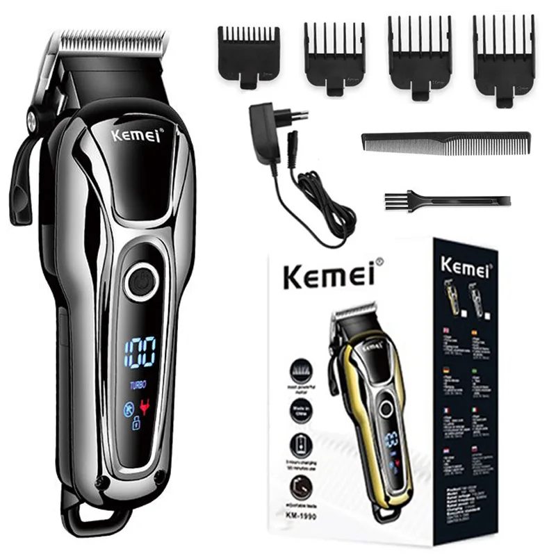 Kemei Profi Haarschneider & Barttrimmer – Kabellos/Kabelgebunden, Turbo Motor, LCD Display