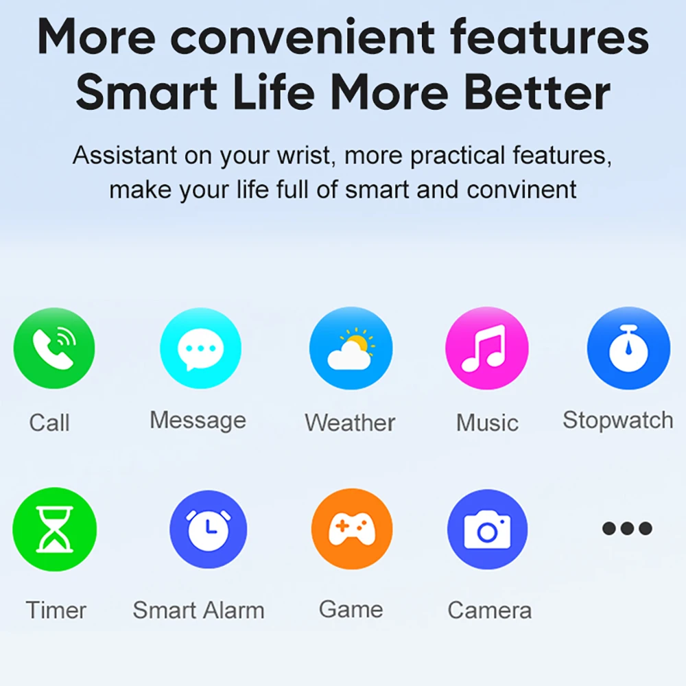 Mit integrierten Funktionen wie Herzfrequenzmessung, Blutsauerstoff, Schlaftracking und über 100 Sportmodi unterstützt dich die Smartwatch bei einem aktiven Lebensstil. Dank IP67 Wasserschutz, Musiksteuerung und Benachrichtigungen vom Smartphone ist sie ein stylischer und praktischer Begleiter für jeden Tag.