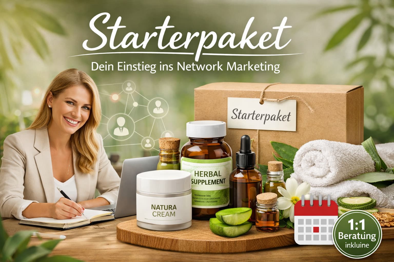 Starten Sie erfolgreich Ihr Network Marketing Geschäft mit unserem umfassenden Starterpaket. Dieses Paket enthält sorgfältig ausgewählte natürliche Produkte für Gesundheit und Schönheit, die Ihnen helfen, Ihr Business professionell zu präsentieren. Zusätzlich erhalten Sie eine persönliche Einführungskonsultation, in der Sie alle wichtigen Schritte für den erfolgreichen Einstieg erfahren.